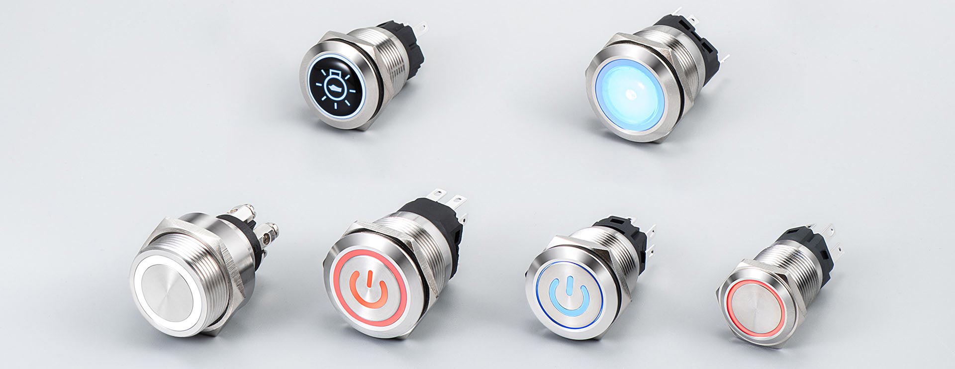 12mm to 25mm series, ultra-short series, rear mounting series, big current series, backlit label kit series, square bezel series